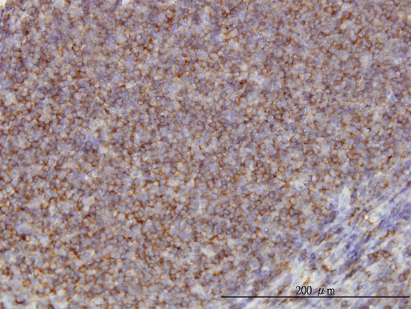 Immunoperoxidase of monoclonal antibody to ADD1 on formalin-fixed paraffin-embedded human tonsil. [antibody concentration 3 ug/ml] |