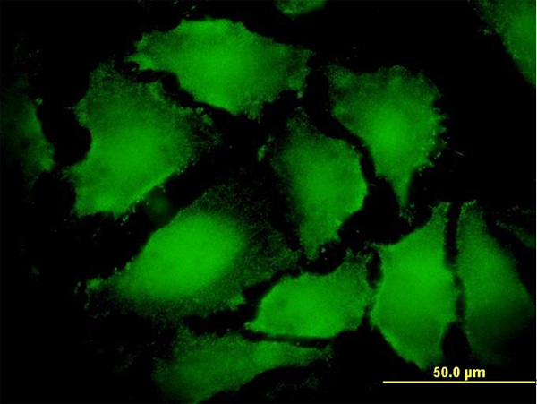 Immunofluorescence of monoclonal antibody to ARD1A on HeLa cell. [antibody concentration 10 ug/ml]