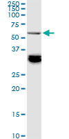 BAIAP2L1 monoclonal antibody (M01), clone 2A4. Western Blot analysis of BAIAP2L1 expression in Hela S3 NE. |