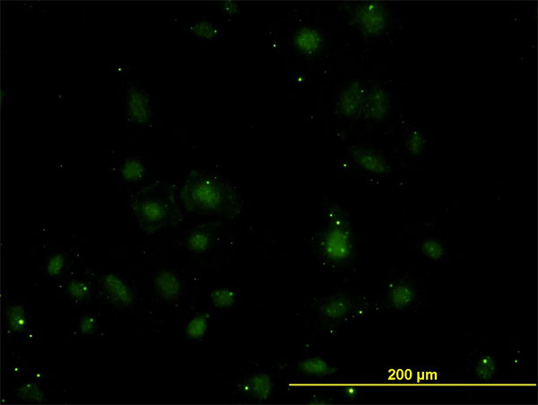 Immunofluorescence of monoclonal antibody to BARX1 on HeLa cell. [antibody concentration 10 ug/ml] |