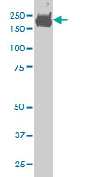 CDC42BPB monoclonal antibody (M02), clone 6G3 Western Blot analysis of CDC42BPB expression in HeLa ( (Cat APR15366G )