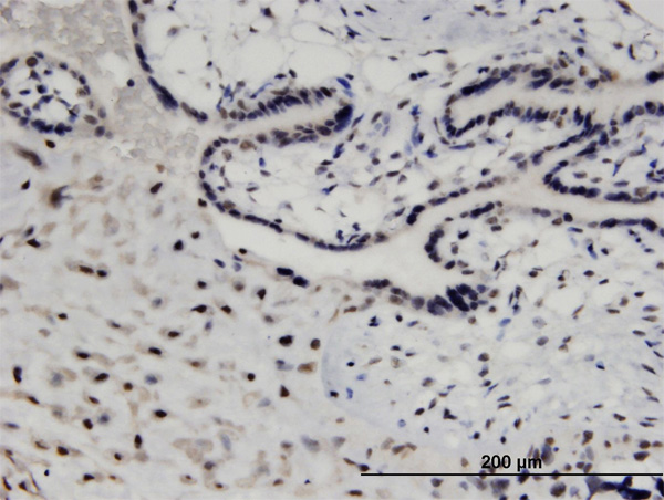 Immunoperoxidase of monoclonal antibody to MED26 on formalin-fixed paraffin-embedded human placenta. [antibody concentration 1.5 ug/ml] |
