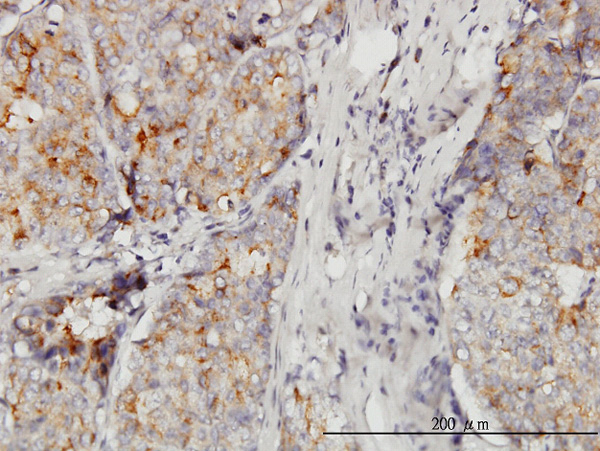 Immunoperoxidase of monoclonal antibody to DOCK4 on formalin-fixed paraffin-embedded human breast cancer. [antibody concentration 3 ug/ml] |