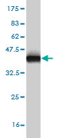 Western Blot analysis of ECH1 expression in transfected 293T cell line by ECH1 monoclonal antibody (M01), clone 5G8. Lane 1: ECH1 transfected lysate(35.8 KDa). Lane 2: Non-transfected lysate. |
