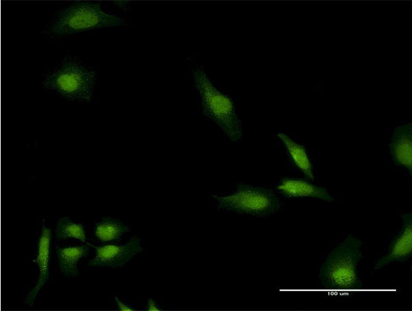 Immunofluorescence of monoclonal antibody to EEA1 on HeLa cell . [antibody concentration 10 ug/ml] |