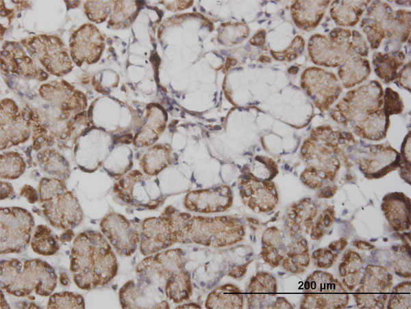 Immunoperoxidase of monoclonal antibody to FABP4 on formalin-fixed paraffin-embedded human salivary gland. [antibody concentration 3 ug/ml]