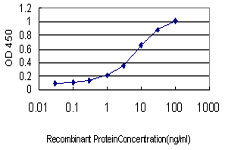 Detection limit for recombinant GST tagged GUCY2D is approximately 0.1ng/ml as a capture antibody. |