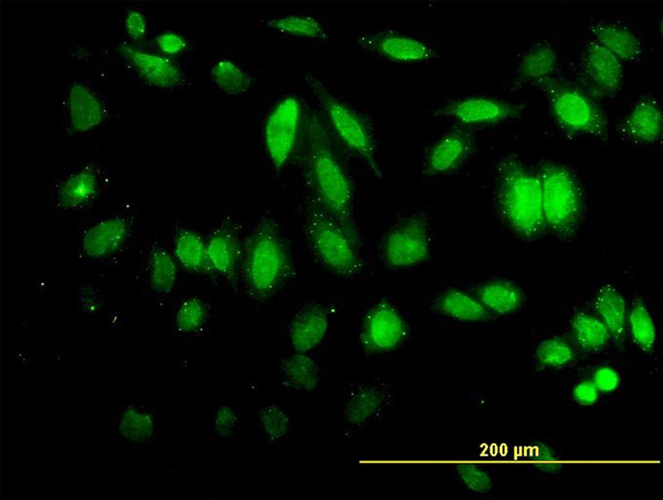 Immunofluorescence of monoclonal antibody to HDAC5 on HeLa cell. [antibody concentration 10 ug/ml]
