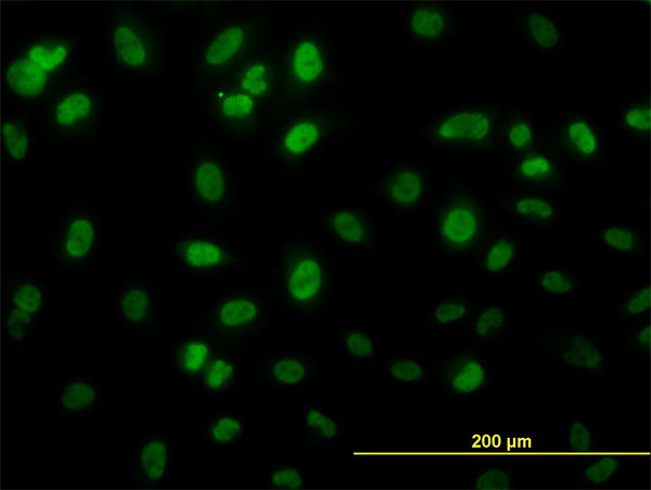 Immunofluorescence of monoclonal antibody to HSGT1 on HeLa cell. [antibody concentration 10 ug/ml] |