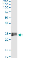 Immunoprecipitation of IFNE transfected lysate using anti-IFNE monoclonal antibody and Protein A Magnetic Bead (<a href="products_detail.asp?Catalog_id=U0007">U0007</a>), and immunoblotted with IFNE MaxPab rabbit polyclonal antibody. |