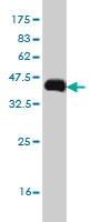 Western Blot analysis of IL31RA expression in transfected 293T cell line by IL31RA monoclonal antibody (M01), clone 3A10. Lane 1: IL31RA transfected lysate(83 KDa). Lane 2: Non-transfected lysate.
