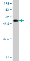 Western Blot analysis of LDB3 expression in transfected 293T cell line by LDB3 monoclonal antibody (M06), clone 3C8. Lane 1: LDB3 transfected lysate(31 KDa). Lane 2: Non-transfected lysate. |