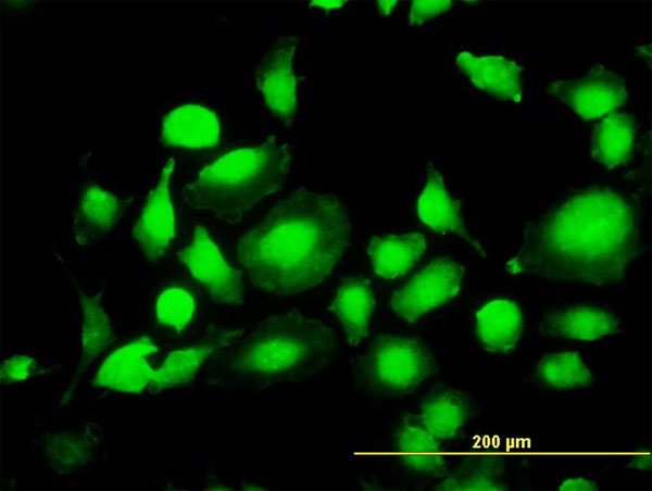 Immunofluorescence of monoclonal antibody to MAPK1 on HeLa cell. [antibody concentration 10 ug/ml] |