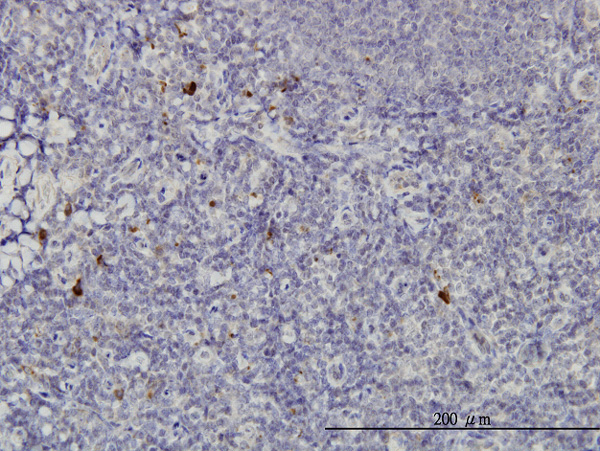 Immunoperoxidase of monoclonal antibody to NKIRAS2 on formalin-fixed paraffin-embedded human tonsil. [antibody concentration 3 ug/ml] |