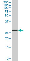 NKX2-5 monoclonal antibody (M01), clone 1E4-G5 Western Blot analysis of NKX2-5 expression in HeLa ( (Cat AMM06706G ) |