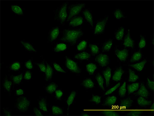 Immunofluorescence of monoclonal antibody to NR1H4 on HeLa cell. [antibody concentration 10 ug/ml] |