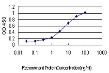 Detection limit for recombinant GST tagged PDCD11 is approximately 0.1ng/ml as a capture antibody. |