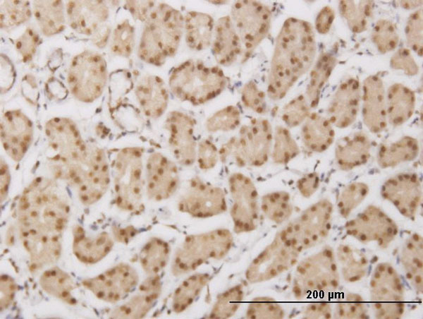 Immunoperoxidase of monoclonal antibody to PLEKHG5 on formalin-fixed paraffin-embedded human stomach. [antibody concentration 1.5 ug/ml]