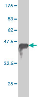 Western Blot analysis of PPP2R2C expression in transfected 293T cell line by PPP2R2C monoclonal antibody (M01), clone 6D1. Lane 1: PPP2R2C transfected lysate(49.5 KDa). Lane 2: Non-transfected lysate. |