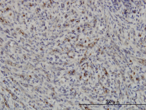 Immunoperoxidase of monoclonal antibody to PRKAA1 on formalin-fixed paraffin-embedded human spleen. [antibody concentration 3 ug/ml] |