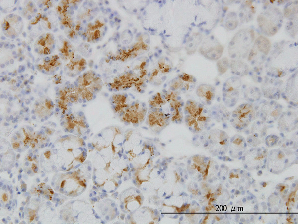 Immunoperoxidase of monoclonal antibody to RBP4 on formalin-fixed paraffin-embedded human salivary gland. [antibody concentration 1 ug/ml]