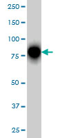 RHOT1 monoclonal antibody (M01), clone 4H4 Western Blot analysis of RHOT1 expression in Hela S3 NE ( (Cat AMR09756G )