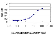 Detection limit for recombinant GST tagged RHOT1 is approximately 0.3ng/ml as a capture antibody. |