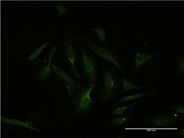 Immunofluorescence of monoclonal antibody to MEF2D on HeLa cell . [antibody concentration 10 ug/ml] |