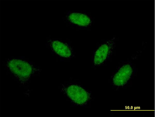 Immunofluorescence of monoclonal antibody to NFYB on HeLa cell . [antibody concentration 10 ug/ml]