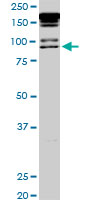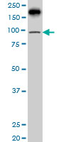 PML monoclonal antibody (M02), clone 1D12 Western Blot analysis of PML expression in Hela S3 NE ( (Cat AMR09396G ) |