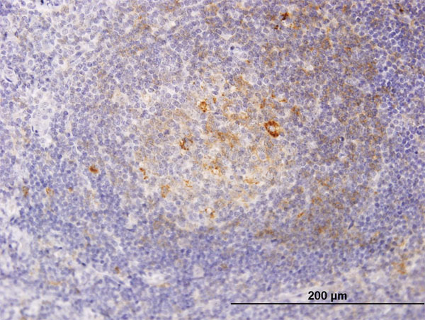 Immunoperoxidase of monoclonal antibody to RSC1A1 on formalin-fixed paraffin-embedded human tonsil. [antibody concentration 1.2 ug/ml] |