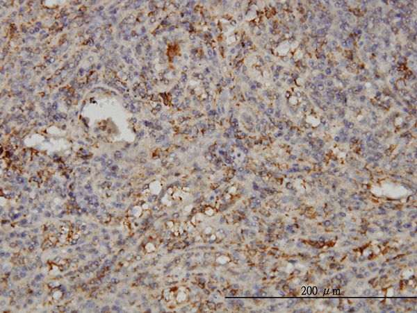 Immunoperoxidase of monoclonal antibody to SNAP23 on formalin-fixed paraffin-embedded human spleen. [antibody concentration 3 ug/ml] |