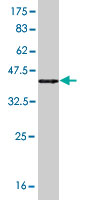 Western Blot analysis of SNCG expression in transfected 293T cell line by SNCG monoclonal antibody (M01), clone 2C3. Lane 1: SNCG transfected lysate(13.3 KDa). Lane 2: Non-transfected lysate. |