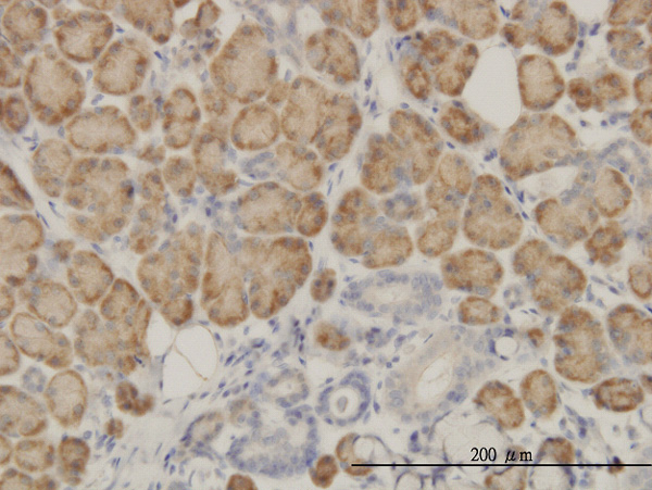 Immunoperoxidase of monoclonal antibody to SRGAP1 on formalin-fixed paraffin-embedded human salivary gland. [antibody concentration 3 ug/ml]