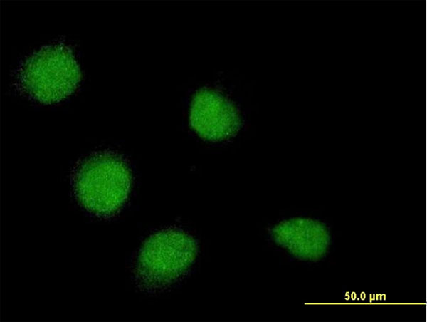 Immunofluorescence of monoclonal antibody to SSX4 on HeLa cell . [antibody concentration 10 ug/ml]