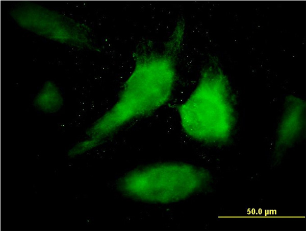 Immunofluorescence of monoclonal antibody to STAT1 on HeLa cell. [antibody concentration 40 ug/ml] |