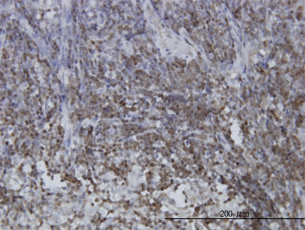 Immunoperoxidase of monoclonal antibody to STAT5B on formalin-fixed paraffin-embedded human lymph node. [antibody concentration 1.5 ug/ml] |