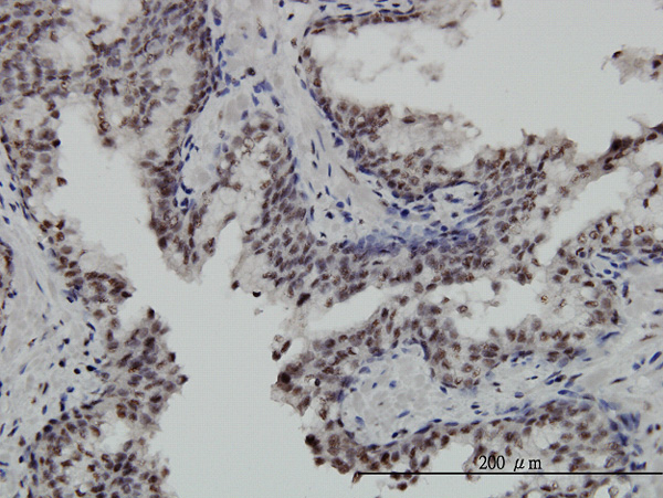 Immunoperoxidase of monoclonal antibody to STK32C on formalin-fixed paraffin-embedded human prostate. [antibody concentration 3 ug/ml] |