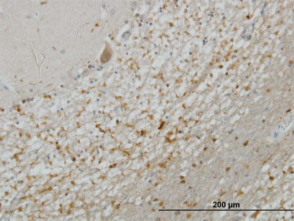 Immunoperoxidase of monoclonal antibody to STX5A on formalin-fixed paraffin-embedded human cerebellum. [antibody concentration 3 ug/ml]