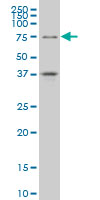 TCF4 monoclonal antibody (M01), clone 3E10 Western Blot analysis of TCF4 expression in A-549 ( (Cat APR14413G )