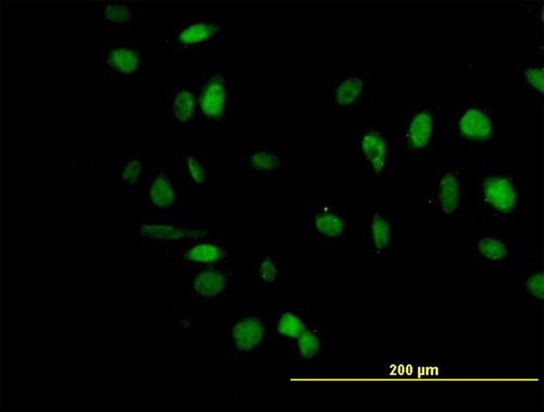 Immunofluorescence of monoclonal antibody to TCF4 on HeLa cell. [antibody concentration 10 ug/ml] |