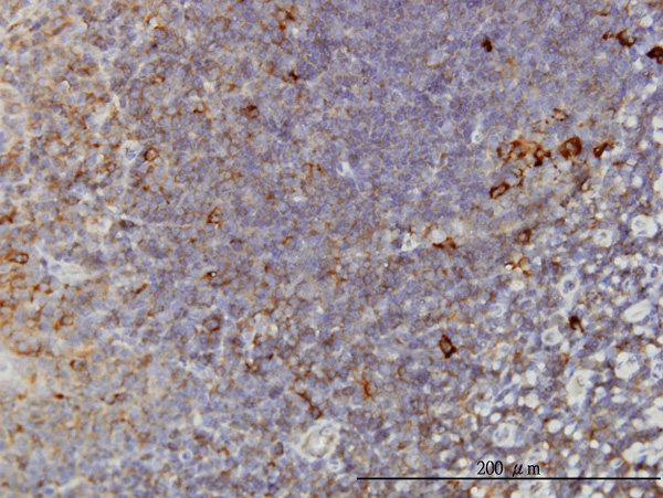 Immunoperoxidase of monoclonal antibody to TCP1 on formalin-fixed paraffin-embedded human tonsil. [antibody concentration 3 ug/ml] |