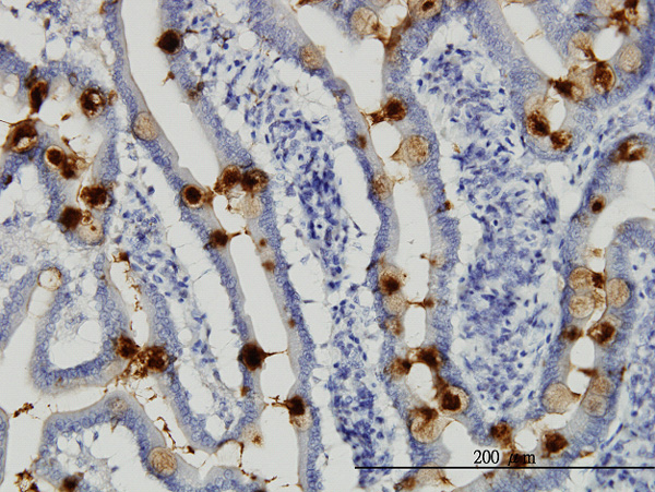 Immunoperoxidase of monoclonal antibody to TFF3 on formalin-fixed paraffin-embedded human small Intestine. [antibody concentration 3 ug/ml]