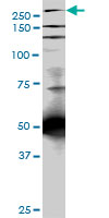 TLN1 monoclonal antibody (M05), clone 5C1. Western Blot analysis of TLN1 expression in Raw 264.7. |