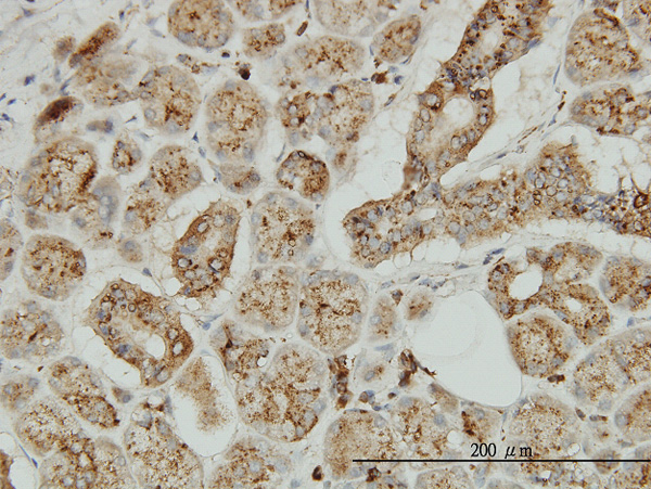 Immunoperoxidase of monoclonal antibody to TPP1 on formalin-fixed paraffin-embedded human salivary gland. [antibody concentration 3 ug/ml] |