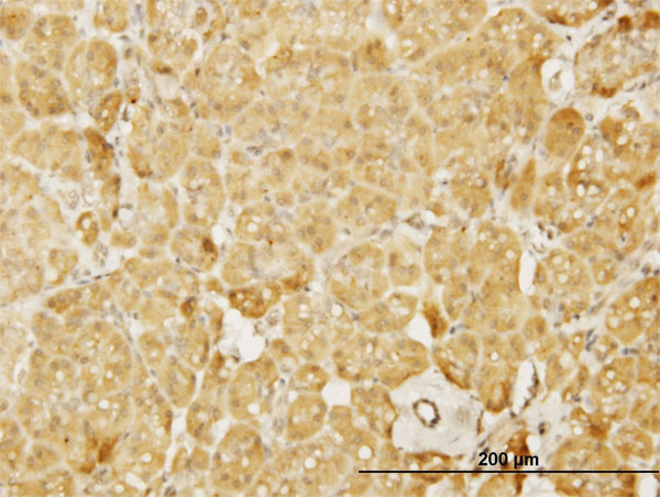 Immunoperoxidase of monoclonal antibody to WASL on formalin-fixed paraffin-embedded human pancreas. [antibody concentration 0.8 ug/ml] |