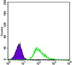 Figure 3: Flow cytometric analysis of A549 cells using TUBB3 mouse mAb (green) and negative control (purple). |