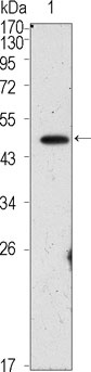 Figure 1: Western blot analysis using OCT4 mouse mAb against PMA treated HepG2 cell lysate (1).