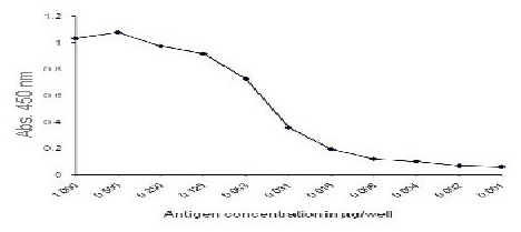 Anti-human GLP1 antibody was used at 1 μg per well for detection of antigen (peptide, 1 μg serially diluted and coated). The antibody at 10μg/ml concentration can sensitively detect coated antigen up to 2 ng per well.