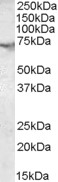 APR12062G (1 μg/ml) staining of Human Cerebellum lysate (35 μg protein in RIPA buffer). Primary incubation was 1 hour. Detected by chemiluminescence. |